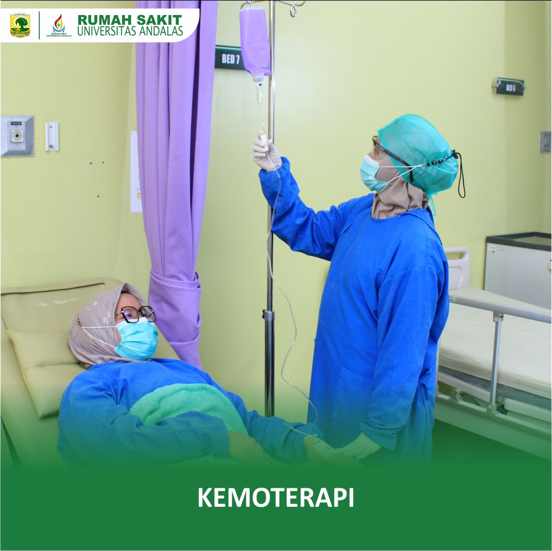 Tindakan dan terapi yang diberikan didukung dengan tersedianya Kamar Operasi, Onkologi Radiasi, Kemoterapi, dan Rehabilitasi Medik.